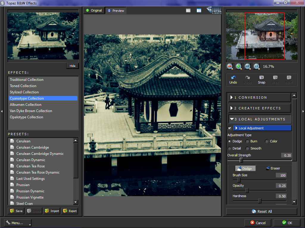 "In addition to the common conversion tools, B&W Effects is packed with specialized exposure and contrast control, realistic toning ability, stylized effects and so much more. Categorized into traditional and alternative processes such as Cyanotype and Albumen, B&W Effects also includes a variety of presets that offer a fun and simple way to create impressive imagery," said Nichole Paschal, senior marketing specialist for Topaz Labs.