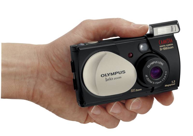 MELVILLE, New York, May 8th, 2001 — Olympus America Inc., the world leader in film and filmless photography, today introduced the newest member of its expanding Brio family of point-and-shoot digital cameras, the Camedia Brio Zoom D-150. The D-150 Zoom joins the Brio D-100, introduced in February, and brings 3X Optical Zoom/6X Digital Telephoto Zoom capabilities to the photographer seeking added versatility in a point-and-shoot camera. Packaged in a contemporary black and gold finish, the stylish Brio D-150 Zoom features a high quality f2.4 –f4.3 Auto Focus Olympus zoom lens, pop-up flash, fast shutter release times of under one second, and AutoConnect technology for simple data transfer via standard USB connections.
