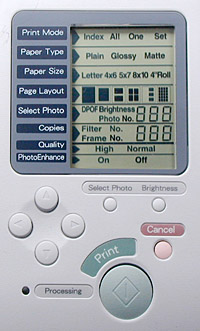 We didn't get to test it, but an optional 1.6-inch color Preview Monitor is also available as an accessory for $99. When operating in standalone mode, this little color LCD lets you see the contents of the memory cards you're printing from , without first printing an index print of the images. Very handy, if you plan to use the printer in standalone mode a lot.