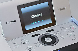 Control Panel. After using the HP C8180's touchscreen, we expected to be disappointed with the MP980's control panel. It consists of a 3.5-inch color LCD on a flip-up panel that is a bit larger to cover the Easy-Scroll Wheel and other buttons on the top lid of the printer. Color display is far from accurate, however. Your prints of images on memory cards will look better than the LCD displays.