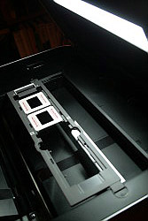 Scanning film is another matter, however. Inside the removable document cover you'll find the film guide, which can hold either a single strip of 35mm film containing up to six images or four mounted slides.