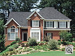 | Far-Field Test Excellent resolution and detail, though a slightly limited dynamic range. This image is shot at infinity to test far-field lens performance. NOTE that this image cannot be directly compared to the other "house" shot, which is a poster, shot in the studio. The rendering of detail in the poster will be very different than in this shot, and color values (and even the presence or absence of leaves on the trees!) will vary in this subject as the seasons progress. In general though, you can evaluate detail in the bricks, shingles and window detail, and in the tree branches against the sky. Compression artifacts are most likely to show in the trim along the edge of the roof, in the bricks, or in the relatively "flat" areas in the windows. This is my ultimate "resolution shot," given the infinite range of detail in a natural scene like this, and the A1 performed very well. The tree limbs over the roof and fine foliage in front of the house show strong detail, with good definition in the leaf patterns. In-camera sharpening does a good job here, as details are sharp, with very little "halo" from the sharpening algorithm. The image is also quite sharp from corner to corner, with very little evidence of softening in the corners, evidence of a very high quality lens. Despite it's slightly high native contrast, the camera picks up pretty good detail in the bright white paint surrounding the bay window, a trouble spot for many digicams. On the flip side though, detail is not quite as strong in the shadow area above the front door, and there's a fair bit of noise there. Overall color looks good, although the image is slightly underexposed and the contrast is a little high. The table below shows a standard resolution and quality series, followed by ISO, sharpness, color, filter, contrast, and RGB series. Resolution Series: