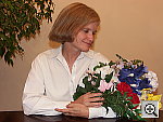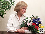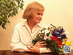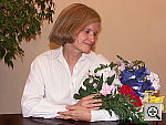 Very good color with both the Incandescent and Manual white balance settings, good exposure as well. This shot is always a very tough test of a camera's white balance capability, given the strong, yellowish color cast of the household incandescent bulbs used for the lighting. Both the A1's Manual and Incandescent white balance settings produced good results, though I chose the Manual setting as the most accurate overall. The Auto setting had trouble, however, and produced a strong orange cast. Marti's skin tone is pretty good here, though slightly pale. The blue flowers came out quite dark, with faint purple tints, a common problem with this shot. The shot at right has a +1.0 EV exposure compensation adjustment, which is about average for this subject among the cameras I've tested. A good job overall.