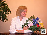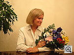 The extreme tonal range of this image makes it a tough shot for many digicams, which is precisely why I set it up this way. The object is to hold highlight and shadow detail without producing a "flat" picture with muddy colors, and the A100 performed well. The shot at right was taken with a +0.3 EV exposure compensation adjustment, which keeps the highlights from losing detail, but leaves the midtones somewhat dark. Increasing the exposure compensation brightens midtones, but washes out color and produces very bright highlights. I chose the Auto white balance setting as the most accurate, though the Daylight setting produced similar results (just slightly warm). Skin tones look about right, though the blue flowers are dark and purplish (a common problem with this shot). Resolution is fairly high, and details are crisp and defined. Detail also looks good in the shadows, with low noise. To view the entire exposure series from zero to +0.7, see files A10OUTAP0.HTM
