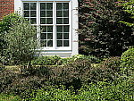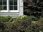 | Far-Field Test Excellent resolution and detail, pretty good dynamic range, but odd noise in the shadows. This image is shot at infinity to test far-field lens performance. NOTE that this image cannot be directly compared to the other "house" shot, which is a poster, shot in the studio. The rendering of detail in the poster will be very different than in this shot, and color values (and even the presence or absence of leaves on the trees!) will vary in this subject as the seasons progress. In general though, you can evaluate detail in the bricks, shingles and window detail, and in the tree branches against the sky. Compression artifacts are most likely to show in the trim along the edge of the roof, in the bricks, or in the relatively "flat" areas in the windows. This is my ultimate "resolution shot," given the infinite range of detail in a natural scene like this, and the A2 does an excellent job with it. The tree limbs over the roof and fine foliage in front of the house show very strong detail, with excellent definition in the tree bark, leaf patterns, and even in the subtle tonal differences of the foliage. As we've seen in the other images above, the A2's images tend to look a little soft if they're left unsharpened. In this image, I don't see the same softening in the corners that I did in the studio test above, details are pretty close to as sharp in the corners as in the center of the frame. The A2 seems to pick up about as much absolute detail here as the Olympus C-8080, a bit less than the Sony F828 and Canon Pro1. - But differences are relatively slight. The camera just barely holds onto details in the bright white paint surrounding the bay window, a trouble spot for many digicams. Detail is also strong in the shadow area above the front door, evidence of a good dynamic range, but the odd striped noise pattern we saw in some of the shots above once again rears its head, limiting the useful shadow detail. Overall color looks good, hue-accurate and appropriately saturated. The table below shows a standard resolution and quality series, followed by ISO, sharpness, saturation, filter, color, and white balance series. Resolution Series: