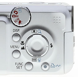 Only one item stands out as non-conventional, and that's the zoom control. Rather than include a separate zoom toggle on the back or around the shutter button, the A460 uses the up and down arrows on the Four-way controller to zoom to telephoto and back to wide. If this is the only Canon you'll shoot, it won't take long to get used to, but you'll probably have to explain the zoom's location to everyone else who uses the camera.