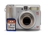 The A530's bottom panel is reasonably flat, with a sliding door to access the battery compartment and a threaded plastic tripod mount off in the opposite corner. The battery door and tripod mount are far enough away from each other to make quick battery changes while working with a tripod. Inside the battery door are wells for two AA cells, a small slot for the tiny CR1220 battery that maintains the camera's clock settings when the main batteries are out, and the SD/MMC memory card compartment.