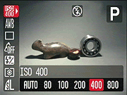 ISO Speed: Sets the camera's sensitivity to Auto (except in Manual), or to 80, 100, 200, 400, or 800 ISO equivalents. - White Balance: Controls the color balance of images. Options are Auto, Daylight, Cloudy, Tungsten, Fluorescent, Fluorescent H, Underwater, and Custom (manual setting).