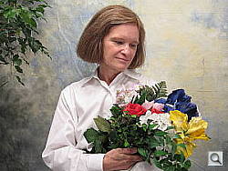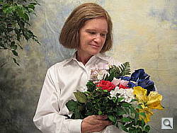 Color balance indoors under incandescent lighting was slightly warm with all three white balance settings, though the Manual option produced the most pleasing results overall. The Canon PowerShot A530 only required a +0.7 EV exposure compensation boost to get a good exposure, a little less than average for this shot. Overall color is dark and slightly red here, making the blue flowers very dark and purplish. (A very common outcome for this shot.) Our test lighting for this shot is a mixture of 60 and 100 watt household incandescent bulb, a pretty yellow light source, but a very common one in typical home settings here in the US.