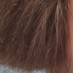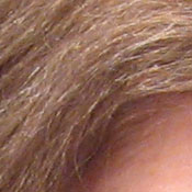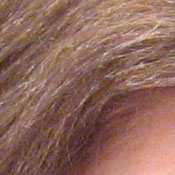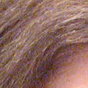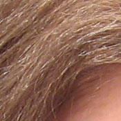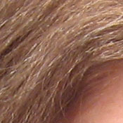 Noise-suppression systems in digital cameras tend to flatten-out detail in areas of subtle contrast. The effects can often be seen in shots of human hair, where the individual strands are lost and an almost "watercolor" look appears. The crop at far right shows this slightly in the darkest shadow areas, though the Canon A530 does capture quite a bit of fine detail here.