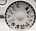 Mode Dial: Also on the camera's top panel, this large, notched dial sets the camera's Record mode with a stiff click. Canon divides the modes into three types. The Creative Zone includes Programmed Auto, Shutter Priority, Aperture Priority and Manual. The green Auto mode is completely automatic. And the Image Zone includes Portrait, Landscape, Night Snapshot, Kids&Pets, and Indoor modes as well as Special Scene modes (Night Scene, Foliage, Snow, Beach, Fireworks, Aquarium, and Underwater) plus Stitch Assist and Movie mode. Full details follow: