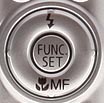 Multi-Controller Rocker Button: The Canon A570 IS's four-way rocker button isn't marked with arrows, but actuates Left, Right, Up, and Down, simulating arrow keys to navigate through settings menus. In Record mode, the Down button toggles through the Focus modes (Macro, Manual Focus, and Auto Focus), while the Up button selects the Flash mode (Auto, On or Off). In Playback mode, the Left and Right buttons scroll through captured images. When an image has been enlarged, all four arrows pan within the view.
