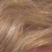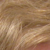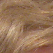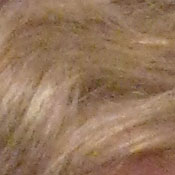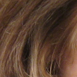 Noise-suppression systems in digital cameras tend to flatten-out detail in areas of subtle contrast. The effects can often be seen in shots of human hair, where the individual strands are lost and an almost "watercolor" look appears. The crop above right shows this, as the darker areas of Marti's hair show limited detail.