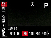 ISO Speed: Sets the camera's sensitivity to Auto, or Auto Hi (except in Manual), or to 80, 100, 200, 400, or 800 ISO equivalents. - White Balance: Controls the color balance of images. Options are Auto, Daylight, Cloudy, Tungsten, Fluorescent, Fluorescent H, Underwater, and Custom (manual setting).