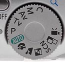 Auto: The camera controls everything about the exposure, except for Flash and Macro modes, image size, and quality settings. Shutter speeds range from 1/2,000 to 1/8 second in Auto mode. Program AE (P): Places the camera in control of shutter speed and lens aperture, while you maintain control over everything else (i.e., white balance, ISO, metering, exposure compensation, flash, etc.). Shutter speeds range from 1/2,500 to one second. Shutter-Speed Priority AE (Tv): Allows you to control the shutter speed settings from 1/2,500 to 15 seconds, while the camera controls the aperture. All other exposure settings are available. Aperture Priority AE (Av): Allows you to set the lens aperture from f/2.8 to f/8.0, while the camera controls the shutter speed, over a range from 1/2,500 to 15 seconds. The maximum aperture depends on the zoom setting, ranging from f/2.8 at the wide angle end to f/4.1 at the telephoto position. In this mode, you maintain control over all other exposure variables. Manual (M): Provides complete control over all exposure settings, including shutter speed and lens aperture. As with aperture-priority mode, the maximum aperture varies with the zoom setting from f/2.8 at wide angle to f/4.1 at telephoto. The fastest shutter speed varies with the aperture and zoom setting: - 1/1,250 at f/2.8-3.2 (wide) or f/4.1-4.5 (tele)
