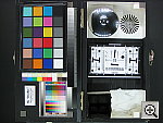 - Optical Distortion: Optical distortion on the A70 is slightly better than average at the wide-angle end, where I measured an approximate 0.7 percent barrel distortion. (This is close to the 0.8% average I've found among cameras I've tested, but I'd really like to see much less geometric distortion in digicam images than that.) The telephoto end fared better, as I measured only two pixels of barrel distortion, corresponding to about 0.1% distortion. Chromatic aberration is very low, showing only about two or three pixels of coloration on either side of the target lines. (This distortion is visible as a very slight colored fringe around the objects at the edges of the field of view on the resolution target.) The most evident shortcoming I noticed in the A70's lens design is higher-than-average flare, particularly in the corners of its images, but present to a lesser extent across the frame as well.