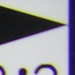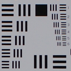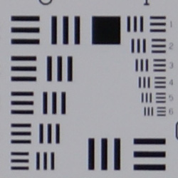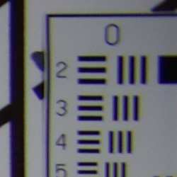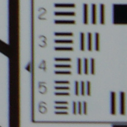 Chromatic aberration is fairly high and noticeable at the full wide-angle setting of the Sony A350's 18-70mm kit lens, showing 8-10 pixels of bright coloration on either side of the target lines. At full telephoto, this distortion is much fainter and not very evident in images. Again, though, the 14-megapixel sensor makes this chromatic aberration seem much more pronounced. (This distortion is visible as a slight colored fringe around the objects at the edges of the field of view on the resolution target.)