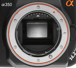 Alpha lens mount. The Sony A350's Alpha lens mount is compatible with the full array of Alpha lenses, both screw-drive and electronic autofocus models.