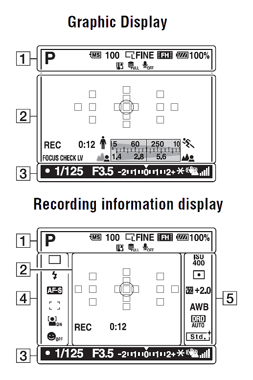 Sony A560 Record Mode Displays | |||