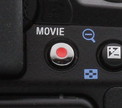 Video capability. There is no separate video recording mode on the Sony A560: Video can be initiated from any still-capture mode by pressing the video Movie button on the angled rear face of the body.