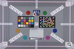 Quick AF Live View mode had slightly less coverage at about 91%, but was also tilted and shifted relative to the sensor image. We're used to seeing close to 100% coverage from cameras' LCDs in Live View mode, but Sony's approach of using a secondary image sensor for Quick AF Live View rather than the main imager means that lower coverage and minor misalignments like this can occur. (The upside, of course, is much faster shutter response than most Live-View SLRs that use the main image sensor for the Live View viewfinder display.)