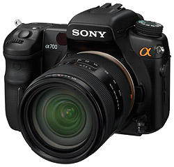 Other features and improvements to the A700 include a higher x-sync speed of 1/250 second (1/200 with Super SteadyShot active), 5 frames per second continuous mode, a new Grip-start sensor, a bigger, brighter viewfinder, and direct HDMI output, a new Bionz processor, and a new 16-105mm f/3.5-5.6 kit lens, equivalent to a 24-157.5mm lens.