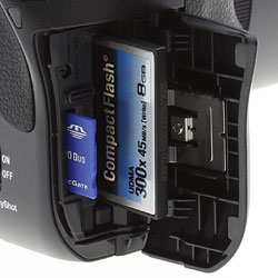 Sony A900 owners will have the option of using CompactFlash or Sony Memory Stick Pro Duo format. Unfortunately, switching between cards is not automatic when one fills up, as is common on other dual-card digital cameras; still, you can access it on the rear Status display, which turns into an onscreen menu when you press the Fn (Function) button.