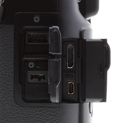 The Sony A900's rubber doors are the best-behaved doors we've seen on any camera, swinging open and staying put, rather than flapping shut when you let them go. In clockwise order from the top left, they are Remote, HDMI, USB/Video out, and DC In.