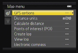 You have to press the Map button on the side to display a map before you hit the Menu button. I suppose they call that context-sensitive menuing. There's a lot of that going on in the Nikon AW100. Skin Softening, for example, only shows up in the menu system when you are in Smart Portrait mode.
