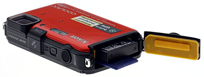 There's more than the memory card and battery in there, too. Nikon has tucked the HDMI and USB ports in there, as well, saving itself from a second sealed compartment. So when you connect the Coolpix AW100 with a cable, you are exposing the battery and card.