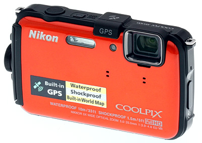 Even the Nikon AW100's color has a function, the bright metallic orange being easy to spot in murky depths, winter storms or dark camera bags. Black and blue options are also available.