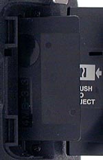 The large black hand grip, which houses both the battery and SmartMedia compartments, is sculpted to fit comfortably in your hand, with a recessed finger hold on the front and a stubbled plastic thumb grip on the back.
