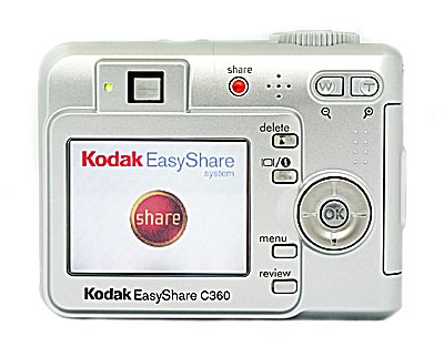 Like the rest of Kodak's EasyShare line, the C360 boasts a simple-to-understand user interface that keeps the fun in point-and-shoot digital photography. The Kodak C360's range of preset exposure modes help you get good-looking shots in just about any situation. The C360's point-and-shoot setup and compact, portable body make it an easy choice for travelers. Like Kodak's other EasyShare cameras, when combined with the accessory camera dock, the Kodak C360 ranks among the easiest to use digital cameras I've seen, avoiding much of the hassle involved with printing photos through a computer. Its lens isn't quite as sharp as those on higher-end EasyShare models like the V550, but given its entry-level price and attractive styling, the Kodak C360 could make a good choice for a family on a budget.