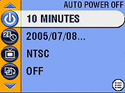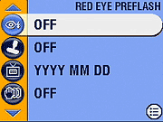 The Kodak C360's LCD display shows the center autofocus area along with currently-selected options for image size/quality, macro and flash mode, the number of images of the current size and quality that can be stored in the remaining space on the memory card. Half-pressing the Shutter button displays the chosen aperture and shutter speed settings. Pressing the Information button once in a record mode cancels the information display, while a second press disables the LCD entirely. A third press brings back both displays. Through the Setup menu, you can disable the "Liveview" function, which eliminates the LCD's viewfinder function.
