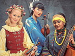 Very good color with Manual white balance, nice detail. This shot is often difficult color-wise, as the abundance of blue in the composition often tricks white balance systems into producing a warm color balance. The C-4000's Auto setting did just that, producing a warm, yellow image. Alternatively, the Daylight and Manual settings produced more natural-looking color, though with very slight magenta tints. Skin tones are the most accurate with the Manual setting, and the blue robe looks about right as well. Though the blue background has faint reddish tints, and the deep shadows of the blue robe are a little purplish, overall color looks good. The camera picks up a lot of fine detail in the embroidery of the blue robe, as well as in the flower garland and beaded necklaces of the other models. Corner softness is only slightly visible in the left corners, and doesn't extend far into the image area. |
