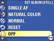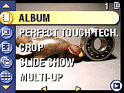 Album: Adds images to an image album, created on a computer with the camera's interface software. - Perfect Touch Tech.: The picture is copied then enhanced for brightness in shadow areas to bring out detail. The original picture is saved. Pictures can only be enhanced once. Kodak Perfect Touch technology can only be used with pictures, not video.