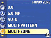 Focus Zone: Controls where the camera's AF system determines focus from. Choices are Multi-Zone and Center-Zone. - AF Control: Sets the autofocus to Continuous or Single modes.