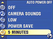 Auto Power Off: Sets the period of inactivity that must pass before the camera shuts itself off. Choices are 1, 3, 5, or 10 seconds. - Date & Time: Sets the camera's internal clock and calendar.