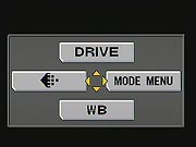 The AF / Macro / MF button on the top panel of the camera accesses the normal AF mode, as well a range of macro, manual, and auto focus modes. A "virtual dial" appears on screen when you press the button, with the options arranged diagonally across the LCD. Pressing the button and turning the Command dial cycles a selection cursor through the options available, which include normal AF, Macro, Super Macro, Manual, and Super Macro Manual modes.