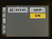 In manual focus mode, a distance scale appears on the LCD monitor, showing distances in meters or feet. Pressing the up and down arrow buttons adjusts focus when manual focus is enabled. As you focus, the image is automatically enlarged in the LCD monitor to better see small details (although, as we noted earlier, this isn't very effective). The manual focus option includes two modes, a normal one, with the focus range extending from infinity down to 8.4 inches, and a super-macro manual focus mode, which extends the focusing range down to 1.2 inches, while still permitting focusing all the way out to infinity. Once the focus is set manually, you can save the focus setting by pressing the Menu / OK button.