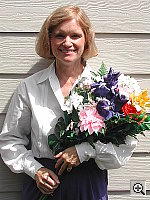 The extreme tonal range of this image makes it a tough shot for many digicams, which is precisely why we set it up this way. (And why we don't use fill-flash on it.) The object is to hold highlight and shadow detail without producing a "flat" picture with muddy colors, and the Coolpix 885 handled the challenge very well. The shot at right has a +0.7 EV exposure compensation adjustment, which brightens the midtones while losing some highlight detail. (Decreasing the exposure compensation to +0.3 EV produced an image that we found much too dark.) We shot with the Auto (936 k), Daylight (977 k), and Manual (949 k) white balance settings, choosing the Daylight setting for our main shot (Auto appeared slightly cool, and Manual resulted in a greenish color balance). Overall color looks good, though skin tones are too magenta. The blue flowers have a fairly pronounced purple tint, a common problem among digicams. Resolution and detail both look good, with strong detail in the shadows (though noise is a bit high in the shadows). Interested readers can see the results of a range of EV adjustments