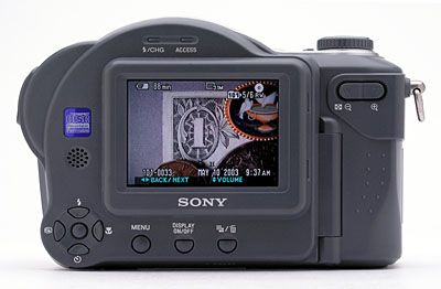 The year 2003 brings important new capabilities to Sony's revolutionary CD-Mavica digital camera line, which first began in late Spring 2000 with the introduction of the Mavica CD1000. Storing their images on CD-R (and now CD-RW) discs, the CD-Mavicas are a logical extension to Sony's original and enormously popular floppy-disk-based Mavica design. With each 80mm CD-R/RW disc storing 156 MB of data for well under a dollar at retail, the CD-Mavicas make nearly perfect traveling companions, since you can fit gigabytes of permanent storage into less space than that occupied by one paperback novel.