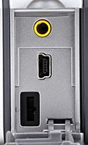 cover protects the connector compartment, which houses the USB, A/V Out, and