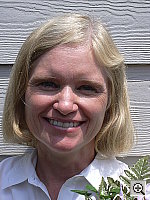 Closer Portrait: Slightly cool color cast and minor underexposure, but good detail. The Coolpix 2000's 3x zoom lens helps prevent distortion of Marti's features, important in close-up shots like this one. (Wide angle lenses distort people's features in close-up portraits.) The camera responded to the harsh sunlight by underexposing the shot slightly, also producing a slightly blue cast and magenta skin tones. The shot at right has a +0.3 EV exposure compensation adjustment. (The default exposure setting was just a touch too dark.) Midtones are bright, and highlights are under control with good detail. The model's face and hair show stronger detail than in the wider portrait above, though details are again slightly soft. Detail is moderate in the shadow areas, and noise is low. |