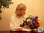 Some difficulty with the incandescent light source. This shot is always a very tough test of a camera's white balance capability, given the strong, yellowish color cast of the household incandescent bulbs used for the lighting. The Coolpix 2000 had a fair amount of trouble with this common light source, producing warm casts at each white balance setting tested. The Auto setting produced the warmest image of all, with a strong orange cast. Both the Manual and Incandescent settings also resulted in warm casts, though with more of a brownish, sepia tone. I chose the Manual setting for the main series, and noticed that the warm cast only decreased slightly with brighter exposures. The main shot has a +1.0 EV exposure adjustment. (Here's an example at the default exposure setting.) Apart from the overall warm cast, skin tones look about right. The warm cast affects Marti's skin tones as well as the flowers in the bouquet, but saturation is pretty good. To view the entire exposure series from +1.0 to +1.7 EV, plus the default exposure, see files C20INMP0.HTM (the default exposure) and C20INMP3.HTM through C20INMP5.HTM on the thumbnail index page. |