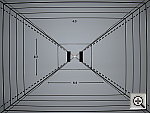 The Coolpix performed about average on the "laboratory" resolution test chart. It started showing artifacts in the test patterns at resolutions as low as 500 lines per picture height vertically and around 400 lines horizontally. I found "strong detail" out to at least 800 lines vertically, possibly 850 lines horizontally. "Extinction" of the target patterns occurred at approximately 950 lines. Optical distortion on the Coolpix 2000 is high at the wide-angle end, where I measured 1.03 percent barrel distortion. The telephoto end fared a better, as I found 0.25 percent barrel distortion at that focal length. Chromatic aberration is moderate, showing about three or four pixels of coloration on either side of the target lines. (This distortion is visible as a very slight colored fringe around the objects at the edges of the field of view on the resolution target.) The strongest optical distortion was in the form of corner softness, most visible on the House poster and outdoor house shot. Resolution Series, Wide Angle