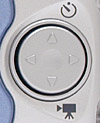 In Record mode, the up arrow (timer icon) calls up the Self-Timer sub-menu, which lets you turn the 10-second self-timer on or off. The left arrow button controls the LCD information display, turning it on or off. The down arrow (movie camera icon) displays the exposure mode sub-menu, which offers Automatic, Manual, and Movie exposure modes.