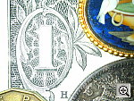 Very tiny macro area with great detail and good flash performance. Like the rest of the Coolpix line, the 3500 performs very well in the macro category, capturing a tiny minimum area of only 1.36 x 1.02 inches (34 x 26 millimeters). Resolution is excellent, with strong detail in the dollar bill. The coins and brooch are soft due to the very short shooting distance (1.6 inches). Though it slightly overexposes the shot, the Coolpix 3500's flash actually does a good job here, considering the close range. Overall, this would be an excellent camera for photographing tiny objects at close range! |