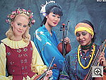 Doesn't quite nail the color here, but good detail and resolution. This shot is often a tough test for digicams, as the abundance of blue in the composition frequently tricks white balance systems into producing a warm color balance. The Coolpix 3500's white balance system had some trouble with this tricky subject, producing slight color casts at each setting. Auto resulted in a very warm image, while the Daylight setting produced a cool image. The Manual setting was a little better, but with a reddish tint. The reddish tint of the Manual setting gives the blue background purplish tints that aren't in the original image. Likewise, the blue robe has purplish tints in the deep shadow areas. Resolution is high, with strong detail in the embroidery of the blue robe. |