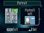 Portrait), and a Scene mode for selecting from among a range of 11 other specific